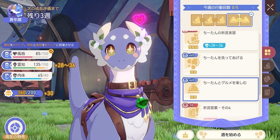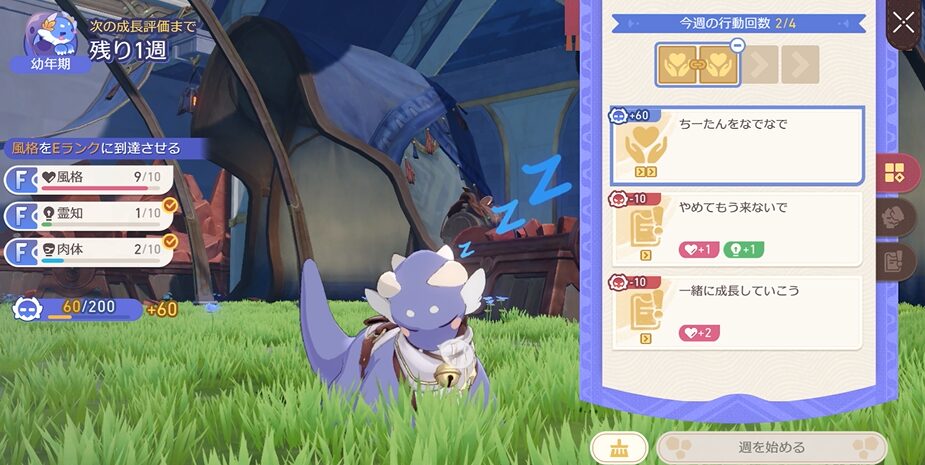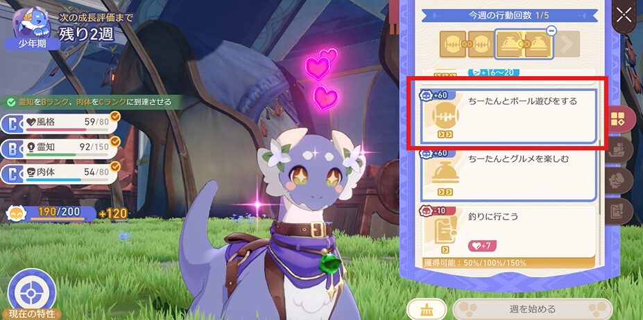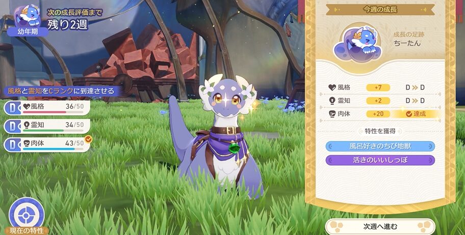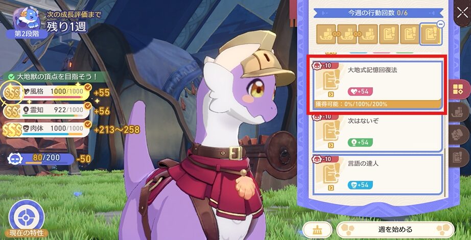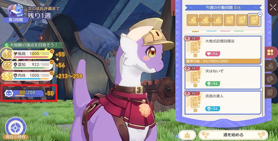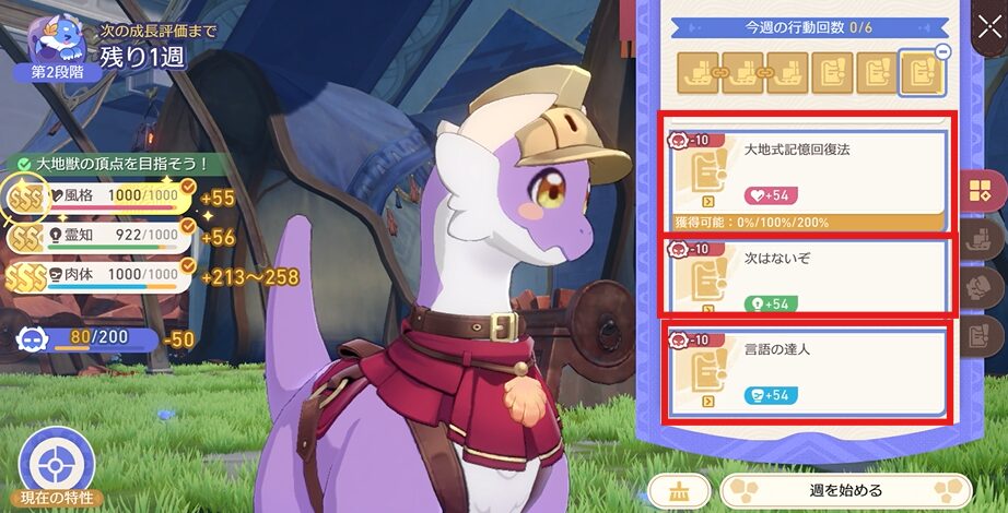 この辺りから大地獣が一人でミニゲームをこなしてくれるようになりますので、目標のパラメータに近づけることに集中していきましょう!