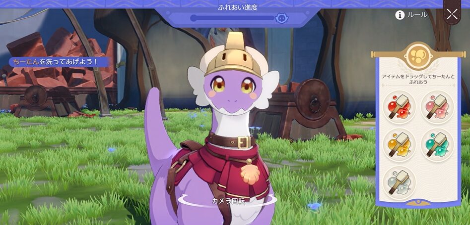 体を洗う、食事を与える、なでるといったスタミナを回復するもの