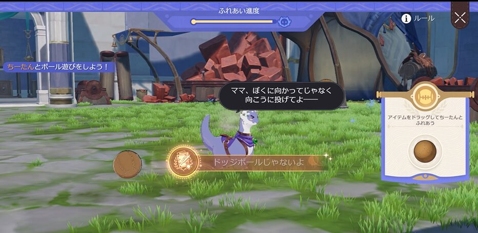 「いい天気だし、飼っちゃおう!」で、小さな大地獣と遊んでいる時にうっかりボールを当ててしまう