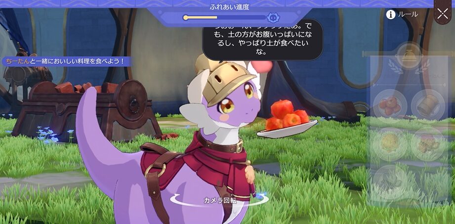 一点だけ補足すると、大地獣との回復イベントで食事を与えるものがあります。赤土を食べさせてあげるのが良いのですが、皿をドラックして顔の真ん前くらいに持っていくと反応しない場合があります。(特に黒土をちらつかせた後)