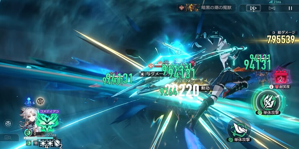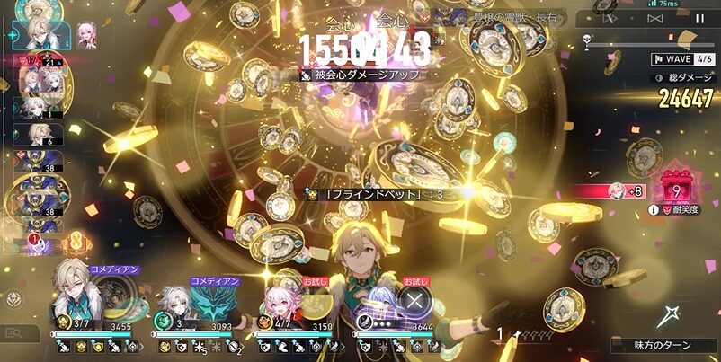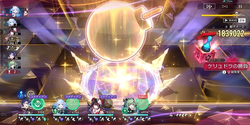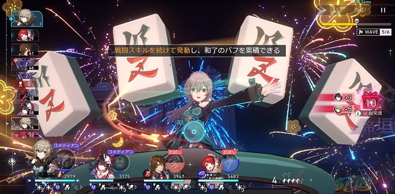 また、耐笑度による攻撃は、簡単に言えば青雀がツモればツモるほど攻撃回数が増えます。また青雀の必殺技によるツモもカウントされます。