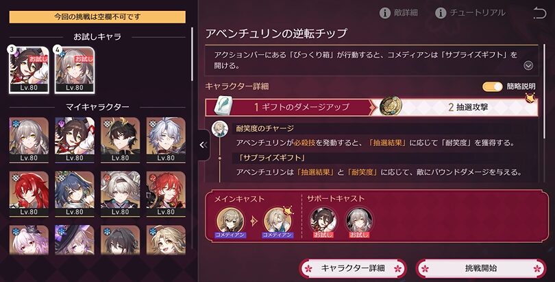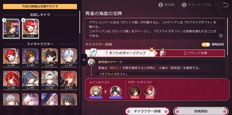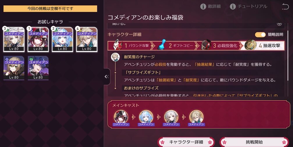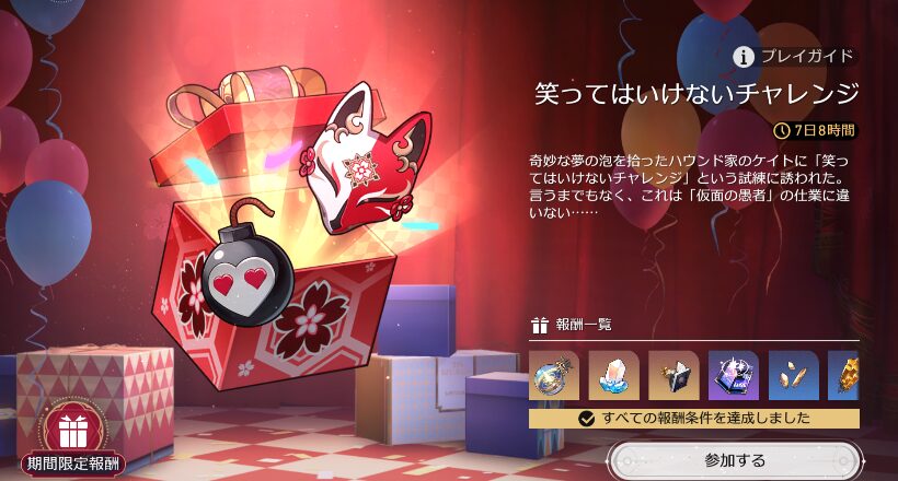 皆さん!崩壊スターレイル楽しんでいますか!?今回は新イベント「笑ってはいけないチャレンジ!」が来ましたので攻略していきます!攻略まで時間がかかり申し訳ありません。以下攻略の何かが参考になれば幸いです。