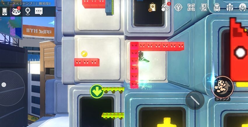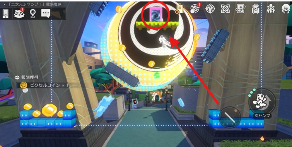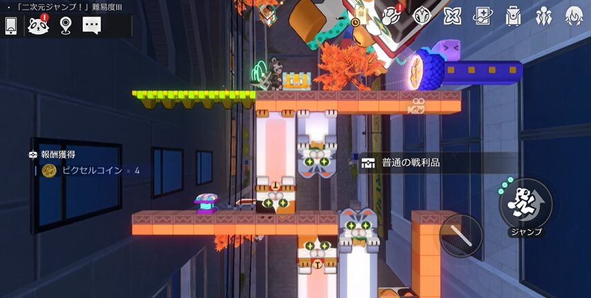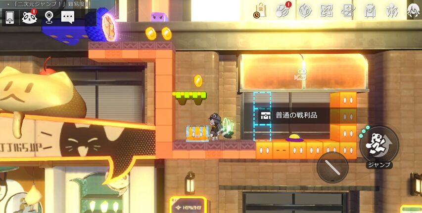 本エリアには路上に宝箱があるパターンと、ギミック「二次元ジャンプ!」内にあるパターンがあります。本攻略ではまず路上の宝箱を解説した後続けて「二次元ジャンプ!」内の宝箱獲得攻略を行います!