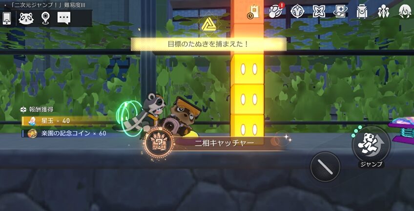 超えてきたら後はタッチして、タヌキ捕獲完了です。