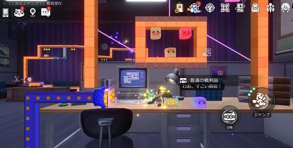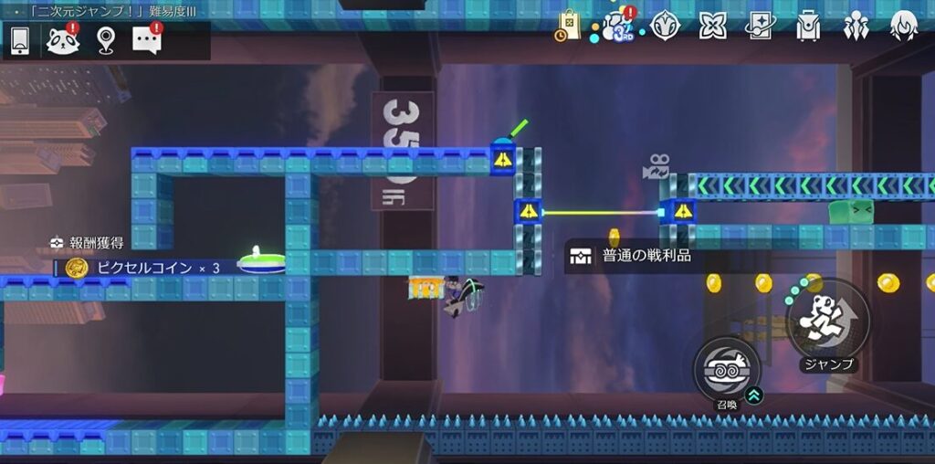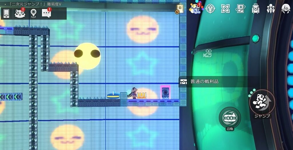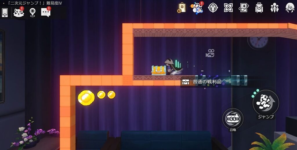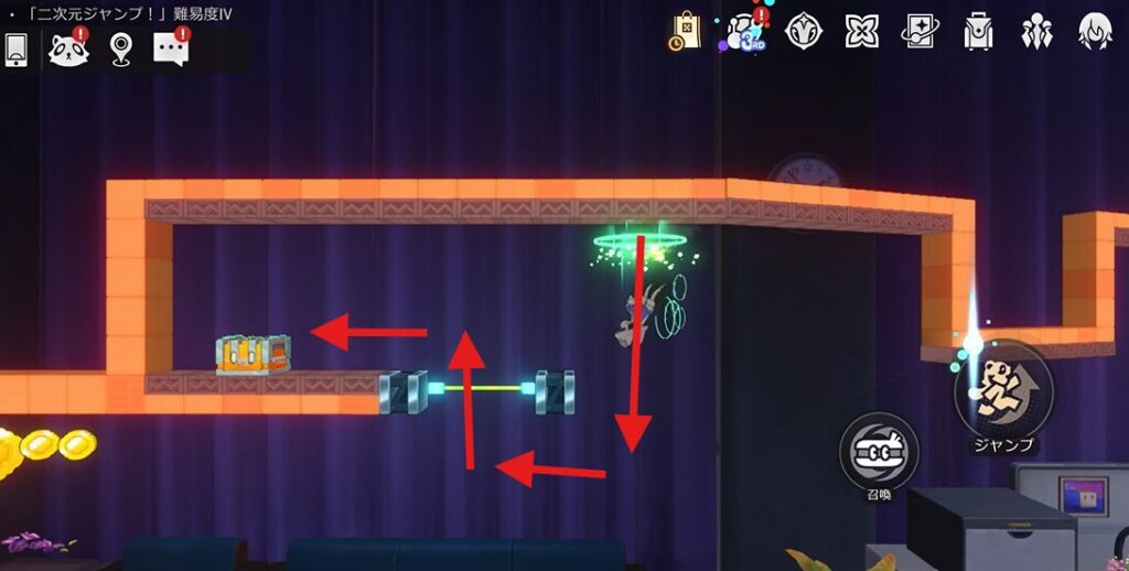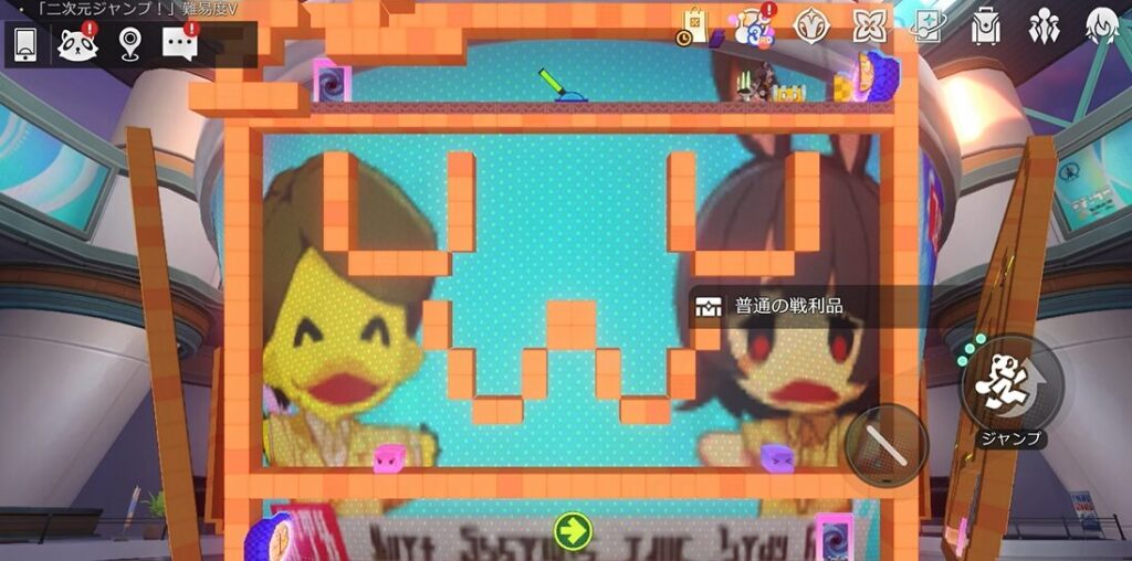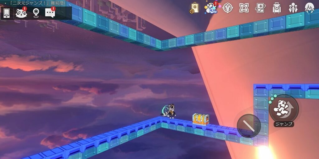 本エリアには路上に宝箱があるパターンと、ギミック「二次元ジャンプ!」内にあるパターンがあります。本攻略ではまず路上の宝箱を解説した後続けて「二次元ジャンプ!」内の宝箱獲得攻略を行います!