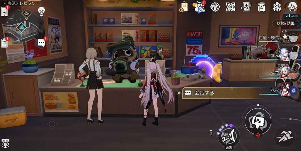 - ★タヌキ① 売店のカウンターにタヌキがいますので会話しましょう。
