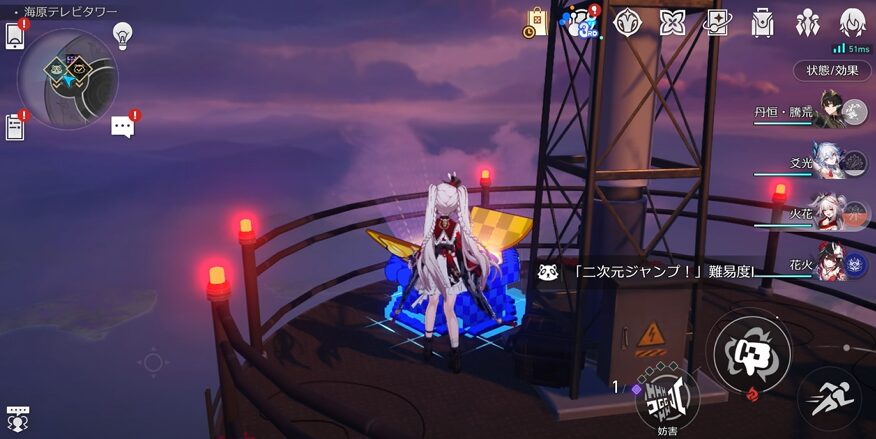 その出口から出ると電波塔の踊り場に出ますので、そこにある入り口から二次元ジャンプに入りましょう。その踊り場に名もなき初がいますので、寄った際には捕獲しておくといいと思います。