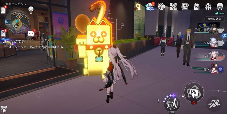 会話後、たぬき変身が始まりますので、近くの社員証が見えているオブジェクトを攻撃しましょう。
