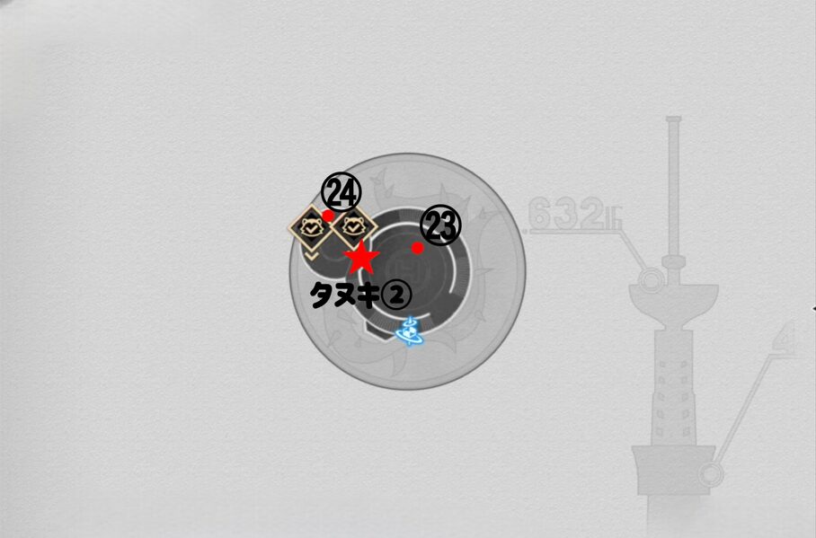 ★ タヌキ② マップ赤★の位置にいる爻光(?)を調べましょう。