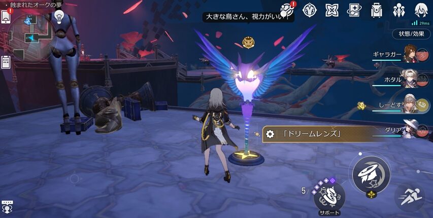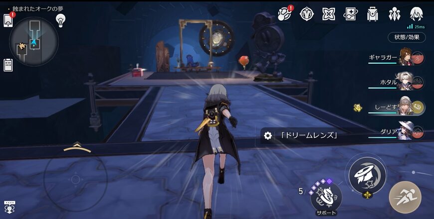 3Fには入手が難しい宝箱⑩がありますので、先に解説していきます。まずは上の全体マップの黄色の★の箇所の「ドリームレンズ」を操作します。他の箇所からでもいいですが、ワープポイントに一番近いので行きやすいと思います。