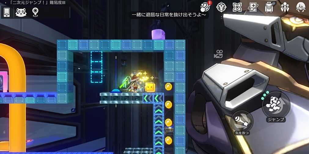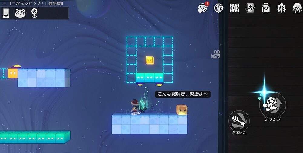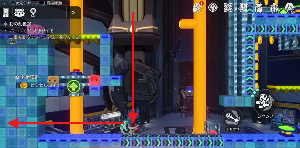 この二次元ジャンプでは、ロボットを作りながら進んでいきます。ちなみに二次元ジャンプに入るにはマップにいます「アステー」に話しかけ「→もう一度やらせて」を選択することで二次元ジャンプに入ることが出来ます。