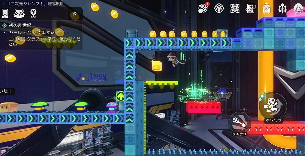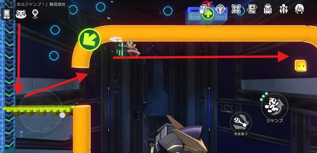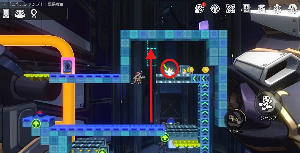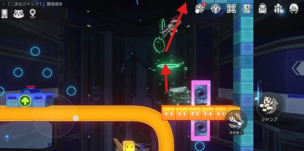 ワープ扉から出た後、右上に向かってジャンプしていきます。