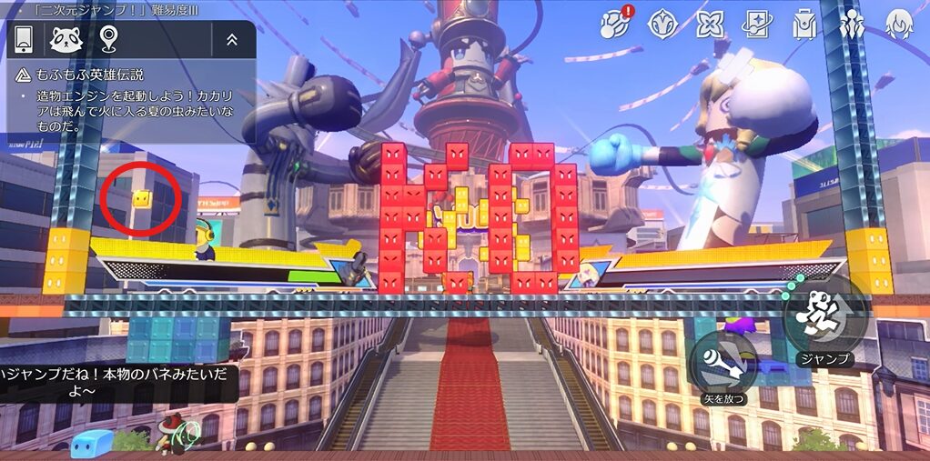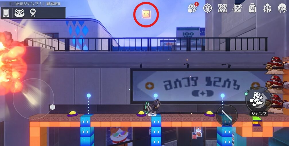 本エリアには路上に名もなき初がいるパターンと、ギミック「二次元ジャンプ!」内にいるパターンがあります。本エリアでは路上と二次元ジャンプ両方を同時に解説します。